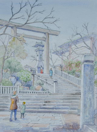 祈願の階段 伊勢山皇大神宮 初もうでの人がお正月の時期には 連なるようにこの階段を上る。 本殿は茅葺の大きな屋根をもって 気が引き締まるような神宮 |