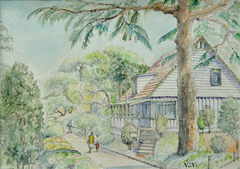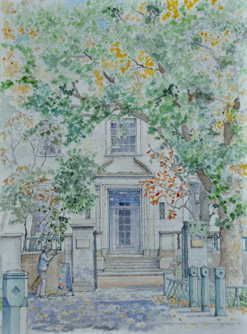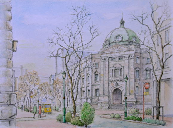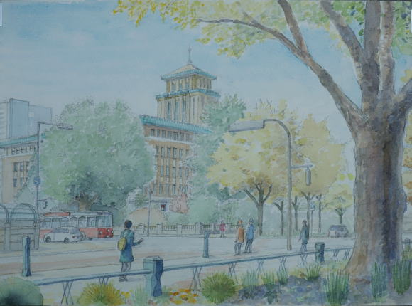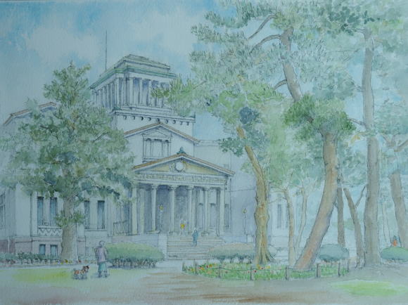 横浜 開港資料館・旧館 庭に「開港当時からある 「たまくすの木」 日本大通りを挟んで県庁側 からスケッチ |