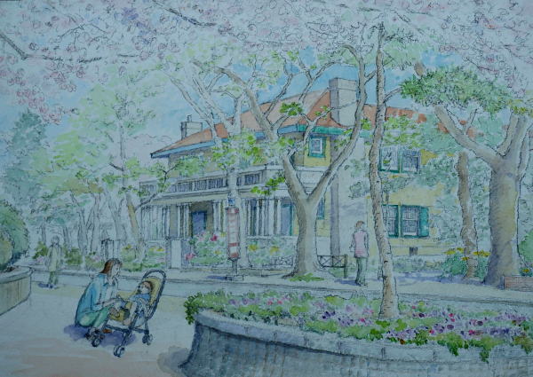 桜に見守られて 横浜・山手 洋館遺構 元町公園の一角は 桜のころ散策が楽しい |