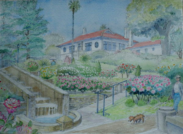 山手・バラの園 イギリス館の横に バラ園が広がる |