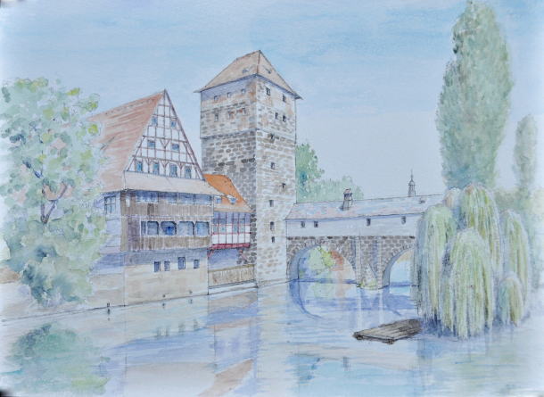 屋根付き橋と塔 Nuernbergニュルンベルクにて