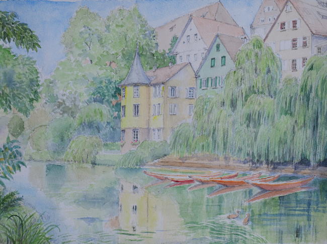 ドイツの南東部にある湖水地方 キーム湖周辺でスケッチ。