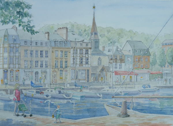 ”港町” Honfleur オンフルールの港 港に面した外のテーブルで ランチのついでにスケッチ この反対側が普通描かれる 建物群の風景 この絵に見える向こう岸ヨット の傍でその景色を描きましたが、 まだ、出来上がりません。 |