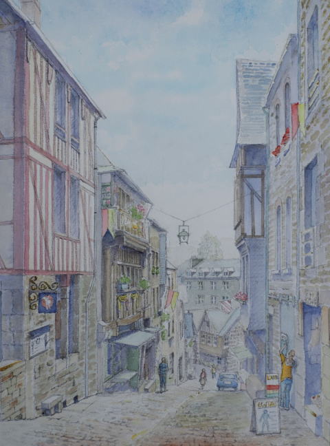 坂道に沿った木組みの家並み ディナン Dinan 木組みの家が多く 残されている街 |