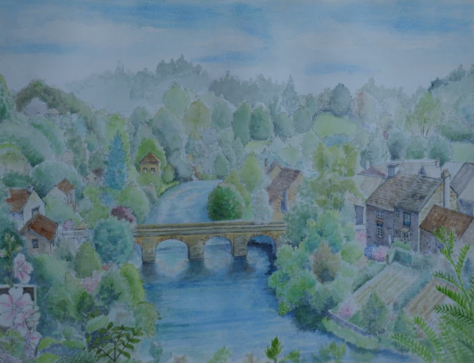 サン・セヌリ・ル・ジェレの橋 村の高台に建つ教会から 眺められる川を見下ろす 風景は穏やかな美しい眺め |