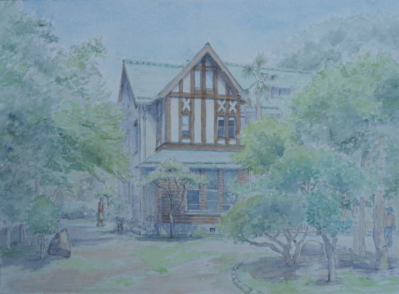横浜山手 イタリア山 ブラフ18 番館 フランス瓦の屋根が特徴 いろんな方角から描いています |