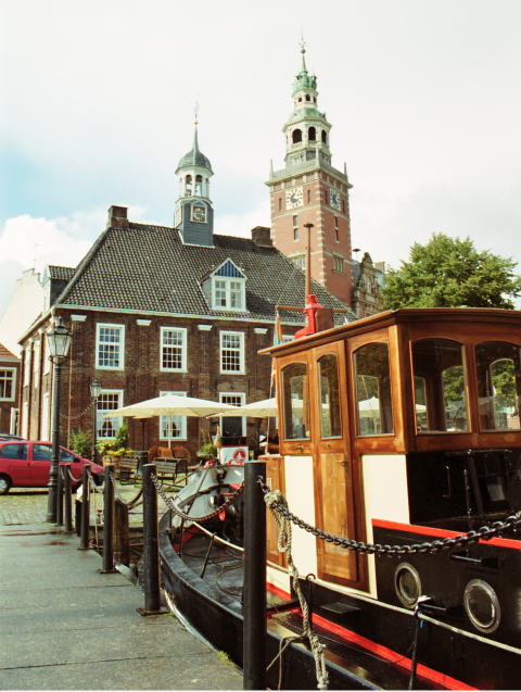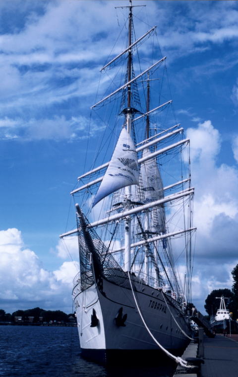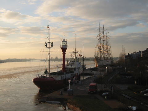 | 係留される帆船 (船内見学もできた) | 船着き場 (オランダに近い街) |