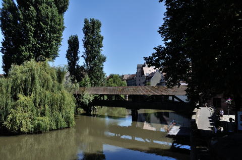 ペグニッツPegnitz川にかかる 木造の屋根付き橋 ヘンカーシュテーク=死刑執行人の小橋(Nuernberg) |