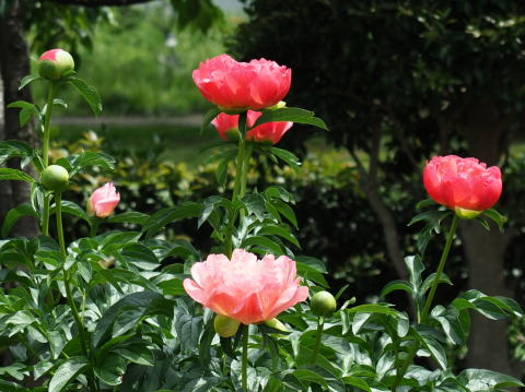 浜離宮庭園でも牡丹園にいろいろなボタンの花が見ごろでした。