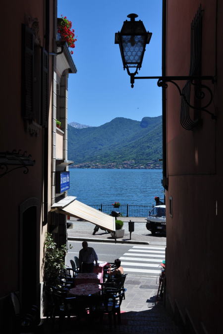 | 路地の間から覗くガルダ湖 |