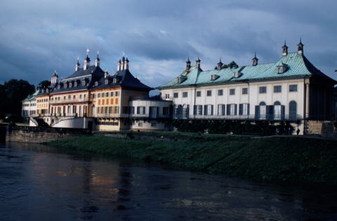 | 河畔に建つ ピルニッツPillnitz宮殿 なかなか優美な外観 | ||