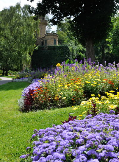 | お城の正面 | 中庭に広がる花園、手入れが行き届いている | |