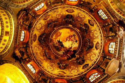 | 小さな8角形の聖堂にビザンチン様式の 壁画が見事に残されていました |