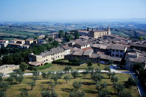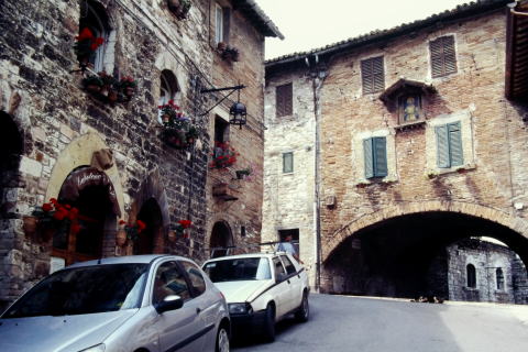 | コムーネ広場にあるミネルバ神殿(かつてGoetheが絶賛) | ||