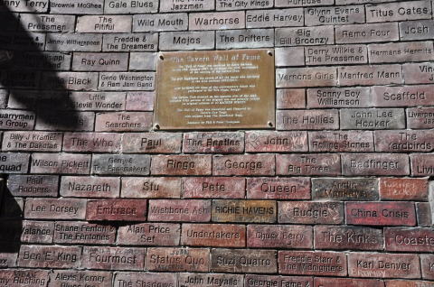 | Cavern Club で活躍したアーティストの名が刻まれている | ||