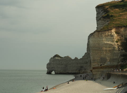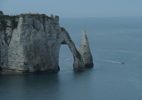 | エトルタの海岸 そそり立つ断崖が見事 | モネなどに描かれたアヴァルの崖 |