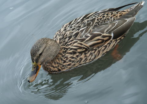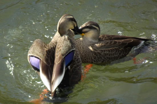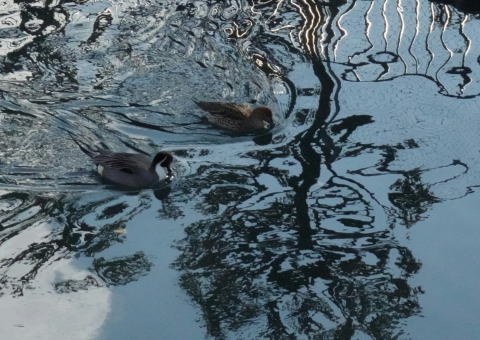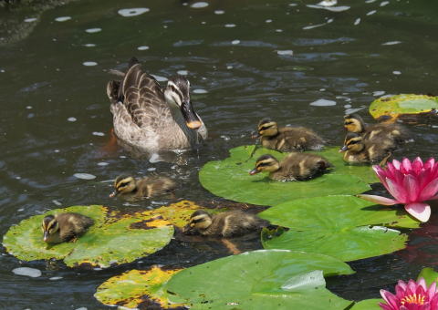 | 影模様の中を泳ぐ | カルガモの親子・お世話が大変 | |||