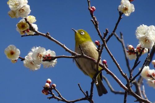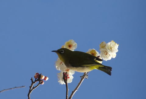 | 梅の蜜を忙しく飛び回って吸う メジロ | カラフルな | |