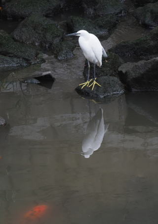 | コサギの影に忍び寄るコイ | 優雅に飛翔 | |