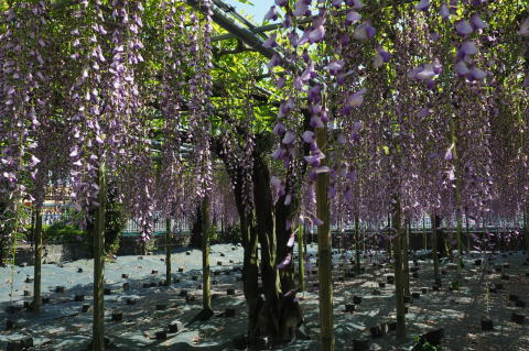 藤沢の大庭城址公園・ 広い公園の藤棚