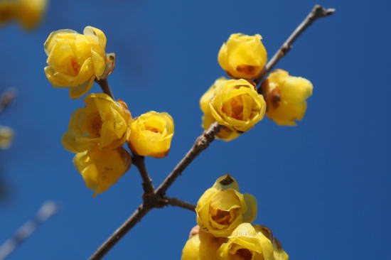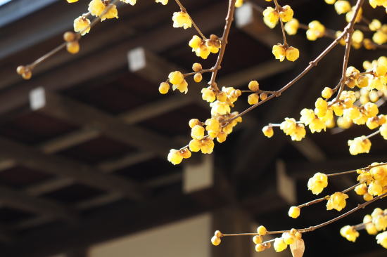 本堂の脇に 数本の大きな ロウバイが見事 |