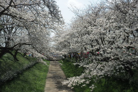 桜の季節到来 桜並木を見たいと 電車を乗り継いで 権現堤の入口近く 桜の回廊が見事 埼玉県幸手市 |