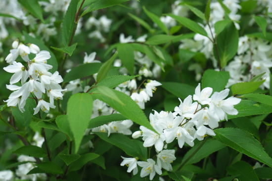 入口近くに 育てられた ”ユキモチソウ” とのこと 利休梅と卯の花 が白い花を 付けていました |