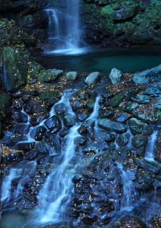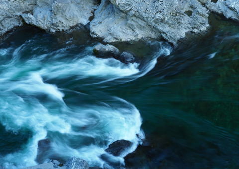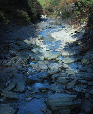 | 曽谷の橋の上から 岩が複雑な流れ | |