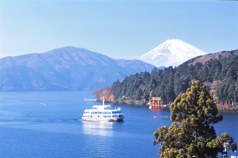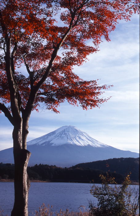 | 河口湖 秋の富士 湖畔の紅葉が赤く染まる時期、富士に冠雪 | |