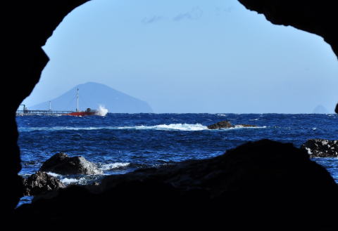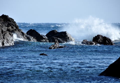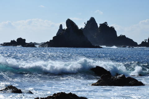 | 爪木崎 水仙岬の岩場に開いた洞穴から青い海を望む | 石廊崎の波 |