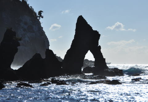 | 石廊崎近くの岩礁・夕暮れ | 夕焼け近づく 田子の海 通称 ゴジラ岩が愛嬌たっぷり |