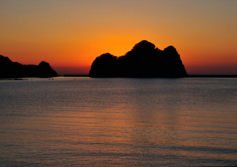 | 土肥の夕暮れ | 西伊豆 岩に隠れる夕日 この瞬間がとても感動的で美しい |