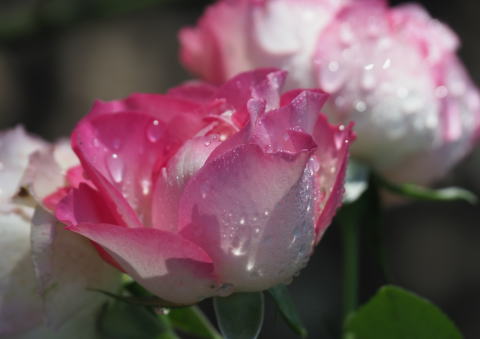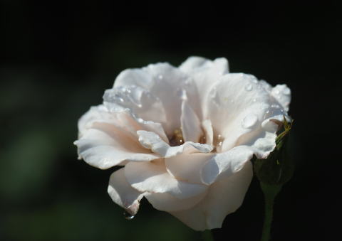 バラの花に雨露が光っていました。