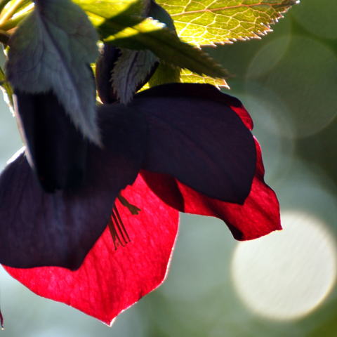 | クリスマスローズ 春先まで咲くクリスマスローズ:下を向いて咲く花に 陽が差し透過光が美しく感じられた |