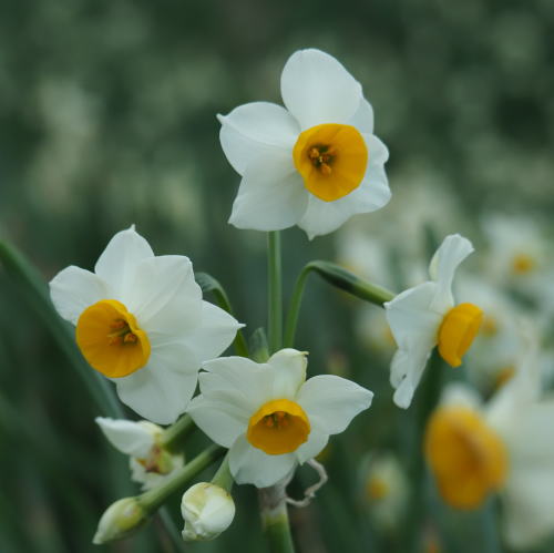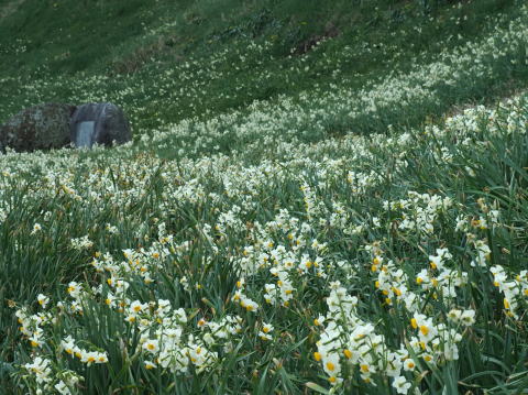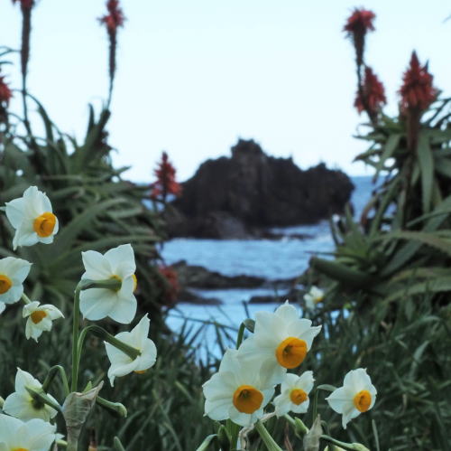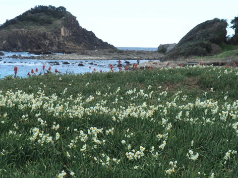 | 新春とは言えまだ寒い冬が残る1月下旬に伊豆半島の先端、爪木崎を何度も訪れました。 浜に面して水仙の群生する花園が広がる。花の香りが微かにあたりに漂う。低い気温の中で、 凛とした花の姿に清々しさを感じます。房総半島の南部にも水仙が群生する場所がある。 鋸南町江月の水仙ロードには道の両側に水仙が咲く。”をくずれ水仙郷”でも湖の近くに咲く。 |