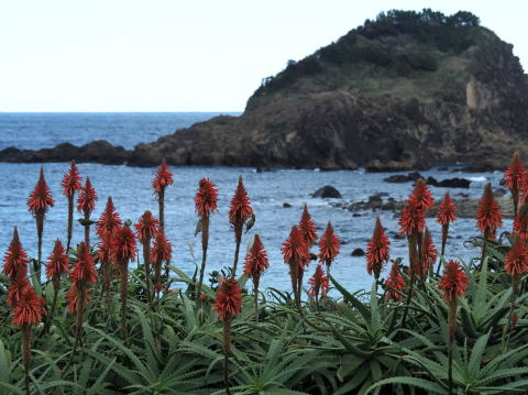 | 水仙岬の海辺に咲く(南伊豆爪木崎) | メジロが集まる浜のアロエ | |||