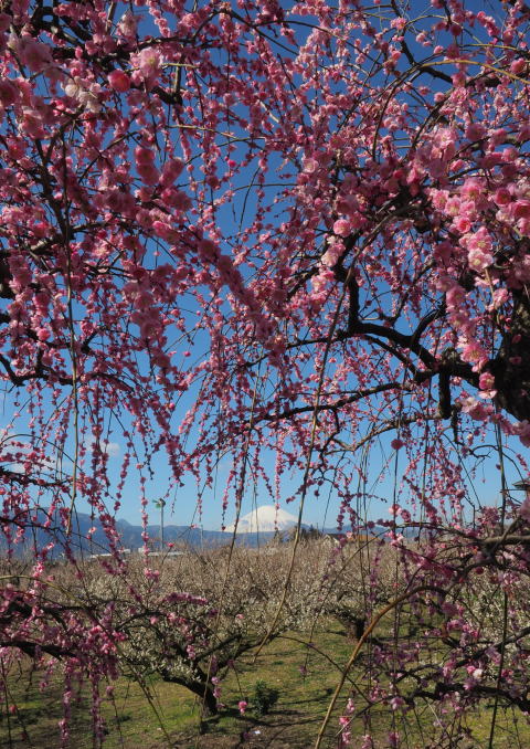 | 富士を背景にしだれ梅が咲く (曽我梅林) | しだれ白梅 青空に映える | 紅梅(曽我梅林) |